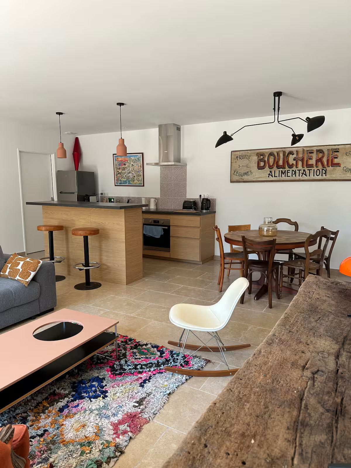 Soyez parmi les premiers à découvrir notre « Maison Jeannot » qui vient tout juste d’être achevée! Idéale pour un séjour en famille, il s’agit d’une maison contemporaine de 100 m2 sur un terrain arboré de plus de 500 m2 avec un charmant bassin carré. Elle dispose d’une vaste pièce à vivre (40 m2) comprenant salon, salle à manger d’une cuisine équipée et d’une buanderie.